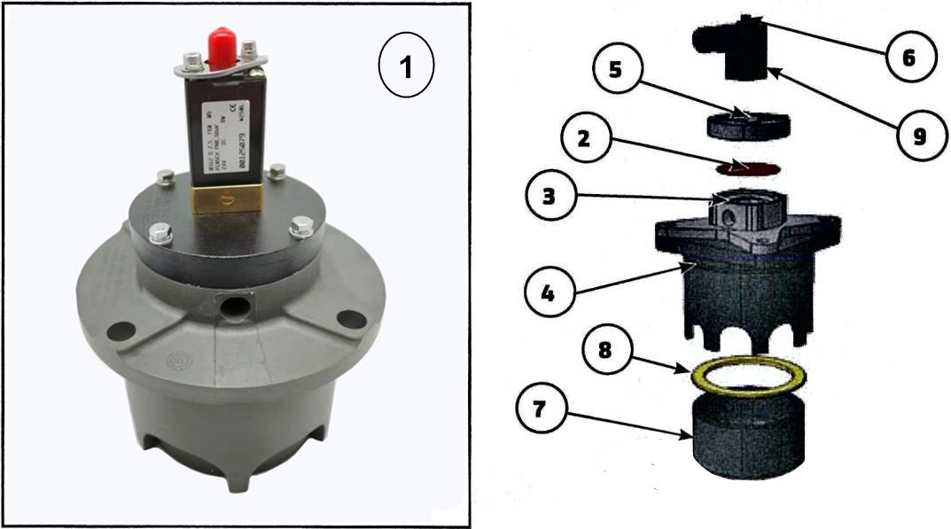 | Solenoid valve (24VDC) | V3611471-0100 | (9) |
