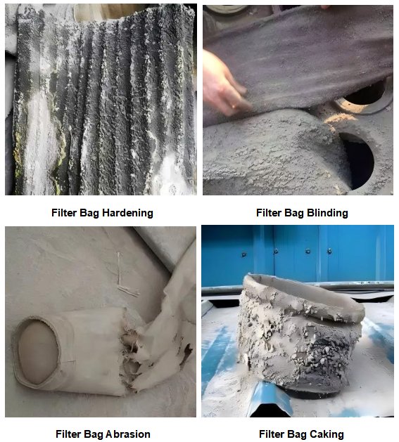Excessively high pulse pressure and frequent cleaning cause fiber breakage and bag mouth tearing. Insufficient cleaning leads to dust caking, increased resistance and permanent clogging.